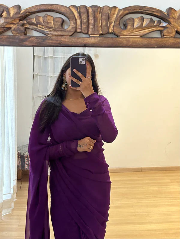Elevate your wardrobe with our exquisite Ready To Wear georgette Saree, crafted for the discerning woman who appreciates luxury and elegance. This stunning ensemble comes complete with a beautifully stitched blouse, ensuring a perfect fit for your next special occasion.