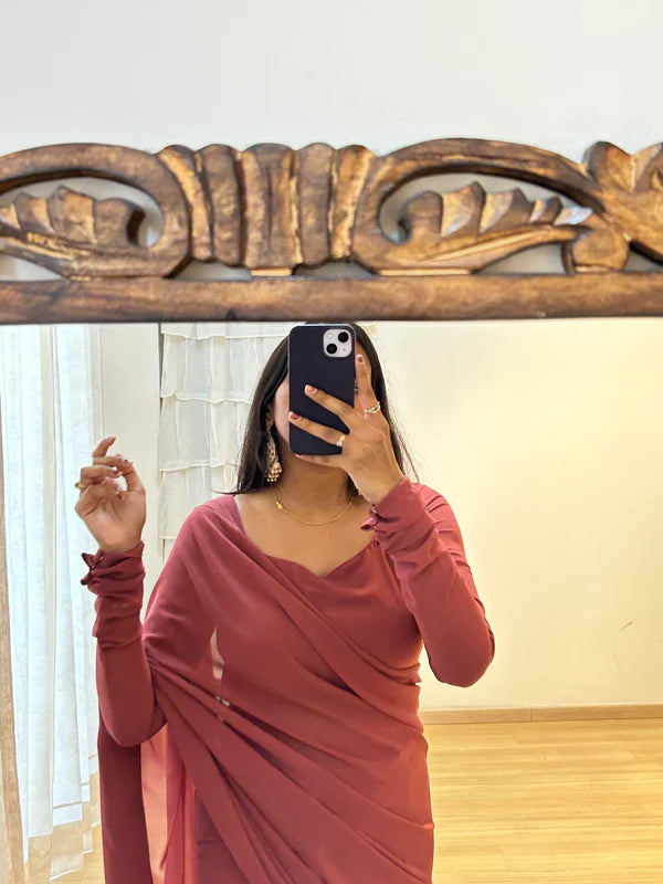 Elevate your wardrobe with our exquisite Ready To Wear georgette Saree, crafted for the discerning woman who appreciates luxury and elegance. This stunning ensemble comes complete with a beautifully stitched blouse, ensuring a perfect fit for your next special occasion.