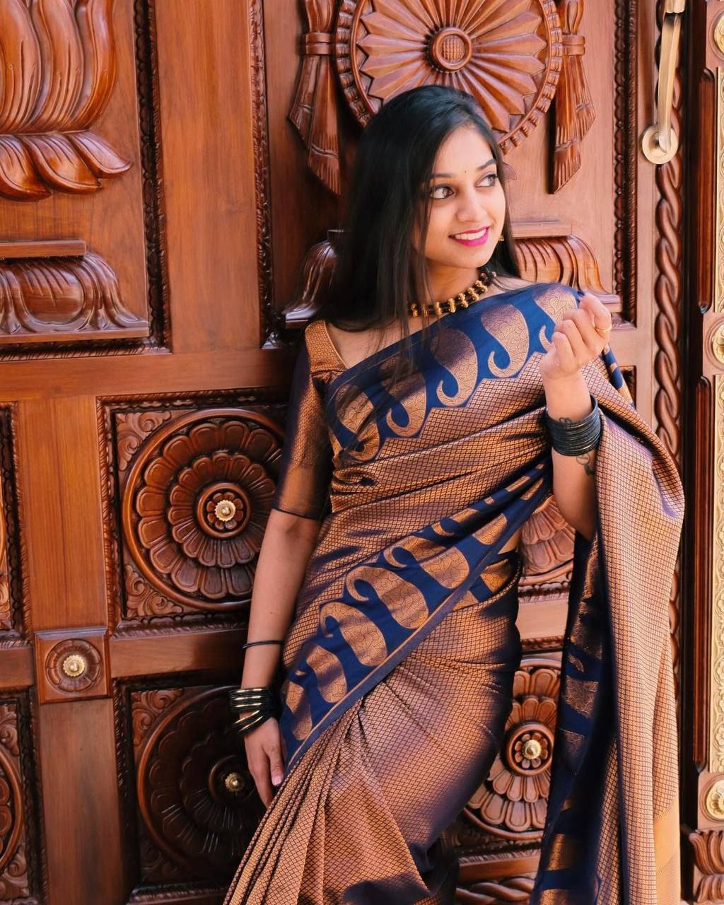 This blue soft silk Kanjivaram saree showcases elegance and tradition with its vibrant matching border, perfect for weddings and festive occasions. Crafted with fine silk, this saree adds a timeless charm to your wardrobe. It comes with an unstitched blouse, allowing you to customize your style. Pair it with minimal accessories to make a lasting impression at any event. Ideal for those who love heritage-inspired fashion.