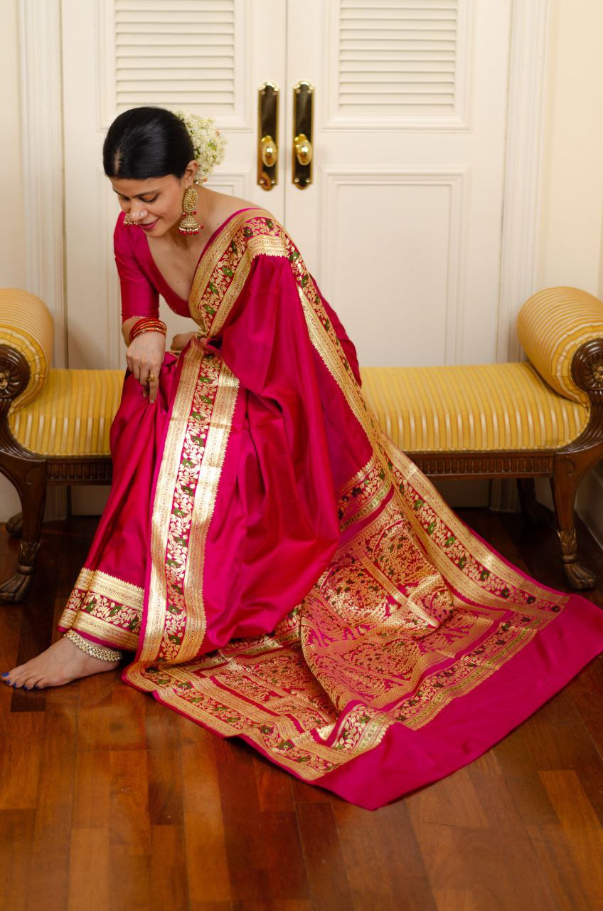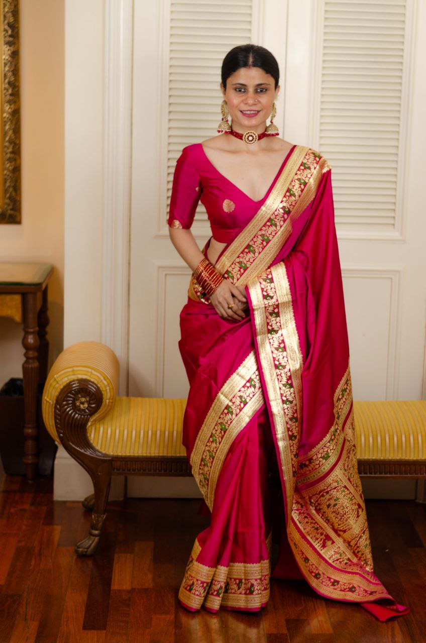 This exquisite Red Kanjivaram saree in soft silk exudes timeless elegance. It features a beautifully coordinated matching border, adding a touch of sophistication to the traditional design. Ideal for festive occasions or celebrations, this saree comes with an unstitched blouse, allowing you to tailor it to your style. Experience the allure of heritage with a modern twist in this classic piece.