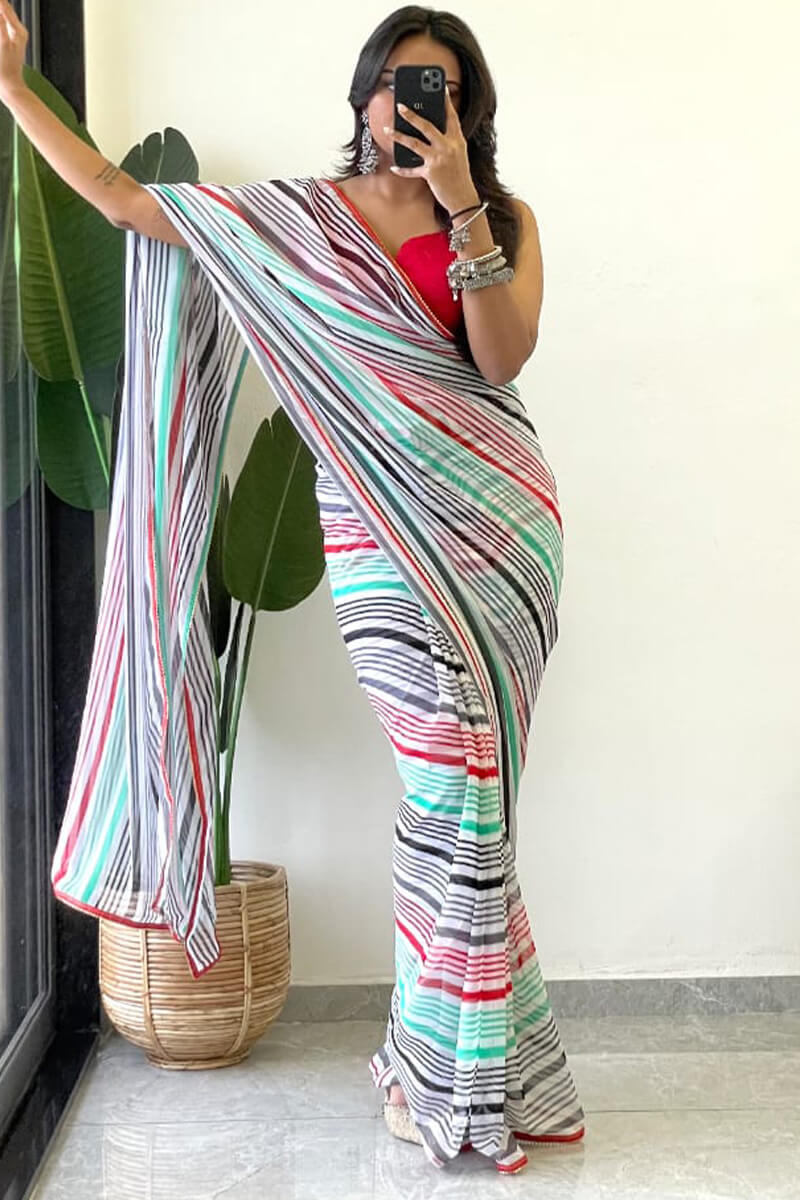 Get ready in a flash with our 1-Minute Ready To Wear Saree! This innovative design allows you to effortlessly drape your saree in just 60 seconds, saving you time and frustration. Made with high-quality fabric, you'll look elegant and put-together in no time at all.