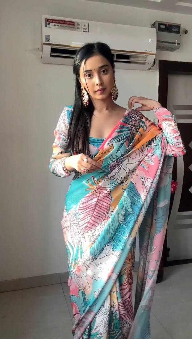 Flawlessly Draped Multi-Color Ready-to-Wear Georgette Saree for Effortless Glamour.