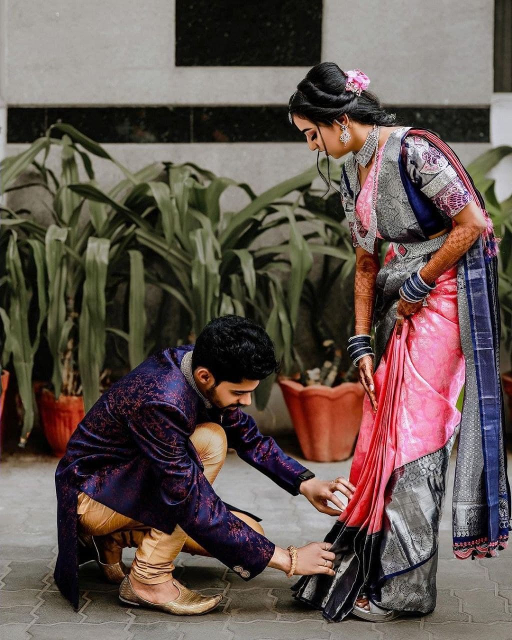 Gracefully crafted in premium soft silk, this Magenta color Pink saree features a striking matching border that enhances its elegance. Designed for festive and traditional occasions, this saree comes with an unstitched blouse, allowing you to customize it to your style. Experience the timeless charm of Kanjivaram weaving and the softness of silk, making this saree an impeccable choice for any celebration.