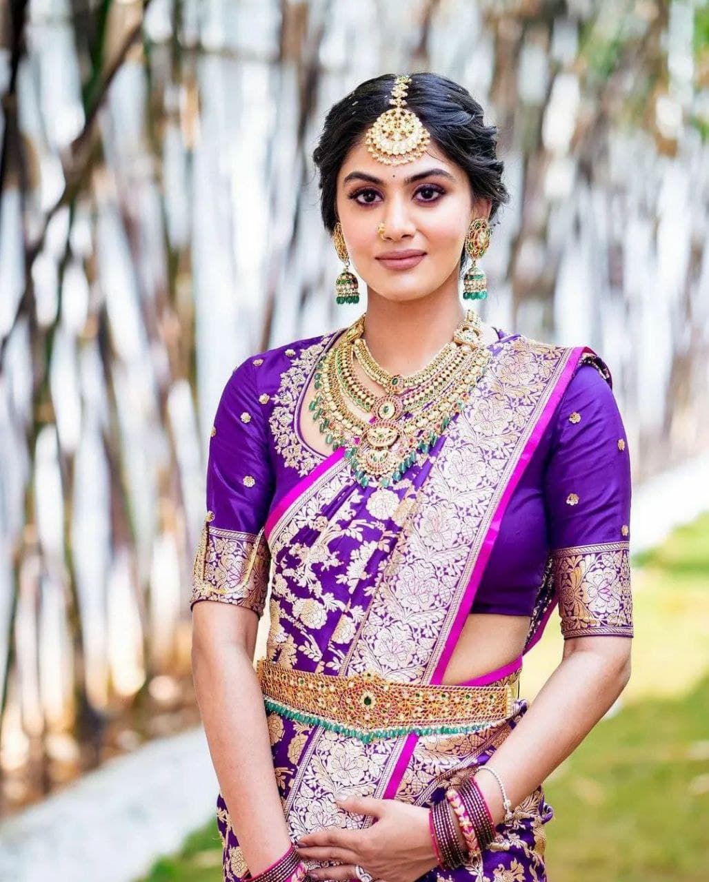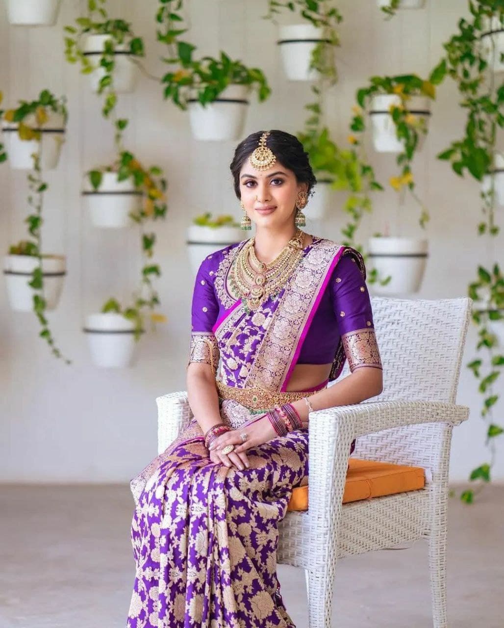 This exquisite Blue Kanjivaram Silk Saree features an intricate design all over, adding a touch of elegance and tradition to your wardrobe. The saree is complemented by a matching border that enhances its beauty. Ideal for festive and special occasions, it combines the timeless charm of Kanjivaram silk with a contemporary aesthetic. Please note, the blouse is unstitched, and jewelry is not included with the saree.