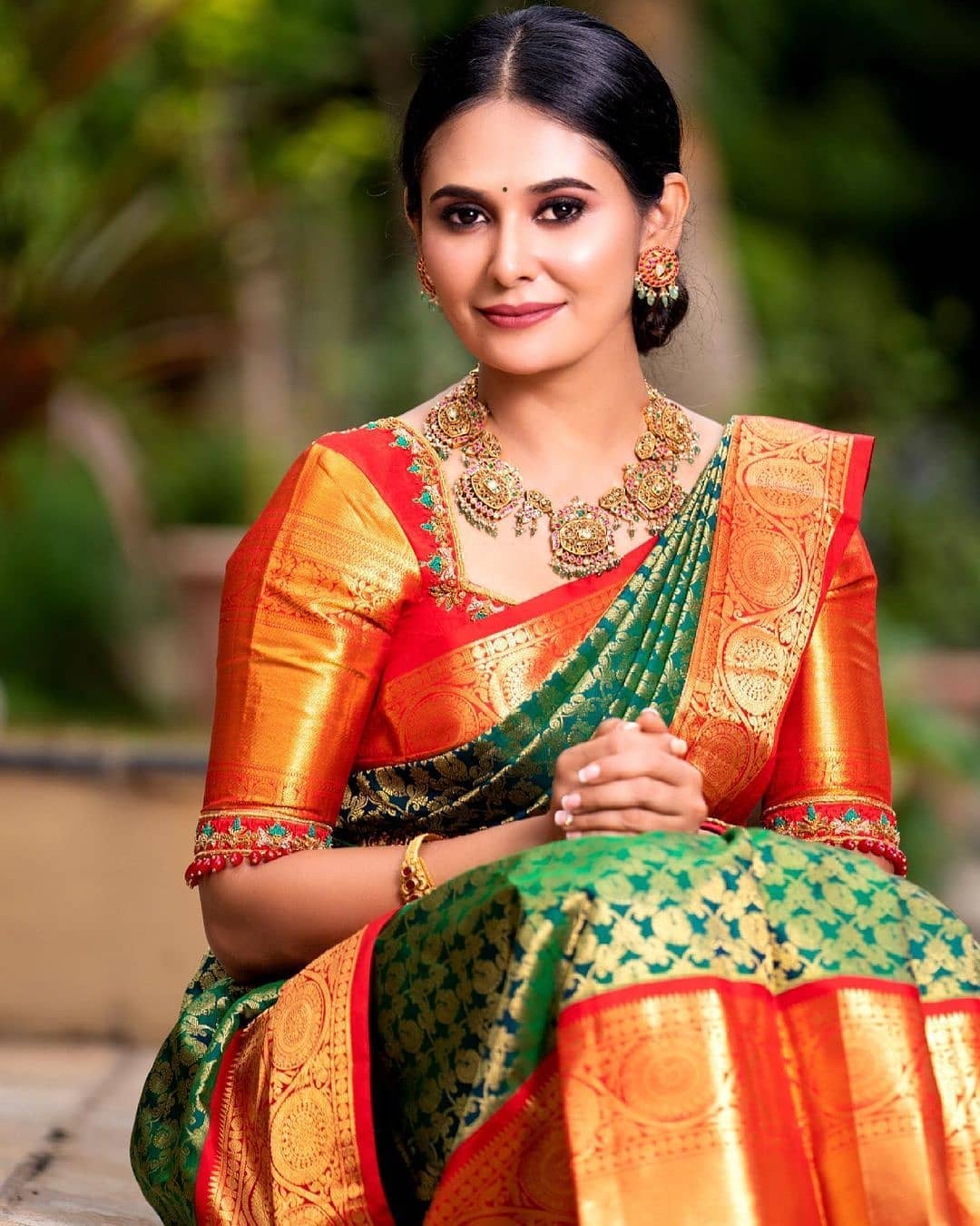 This exquisite green Kanjivaram saree in soft silk exudes timeless elegance. It features a beautifully coordinated matching border, adding a touch of sophistication to the traditional design. Ideal for festive occasions or celebrations, this saree comes with an unstitched blouse, allowing you to tailor it to your style. Experience the allure of heritage with a modern twist in this classic piece.