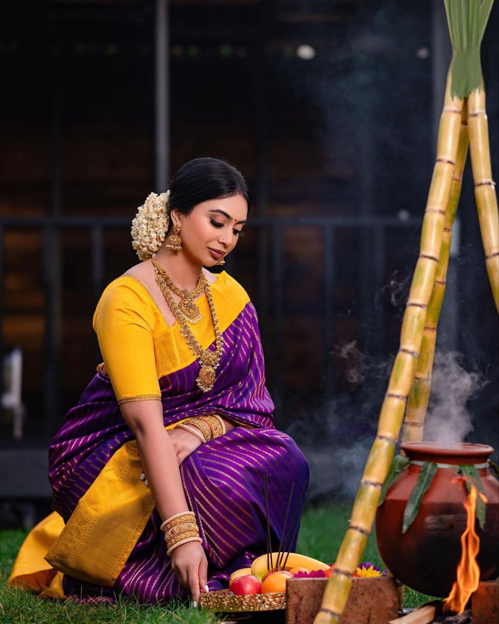 Drape yourself in elegance with this Magenta-colored soft silk Kanjivaram saree, adorned with an attractive matching border that adds a traditional yet modern touch. Perfect for festive and special occasions, this saree comes with an unstitched blouse, offering customization to your style. Its soft silk fabric ensures comfort without compromising on grandeur. Pair it with your favorite jewelry to complete the look, making every moment truly unforgettable.