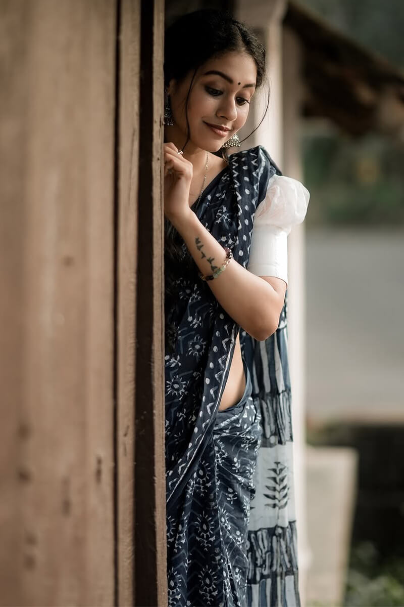 Introducing the Quixotic 1-Minute Ready To Wear Black Cotton Saree, the perfect blend of style and convenience. Made from lightweight cotton, this saree will have you looking elegant in just a minute. No more fussing with pleats and pins, simply slip it on and you're ready to go.