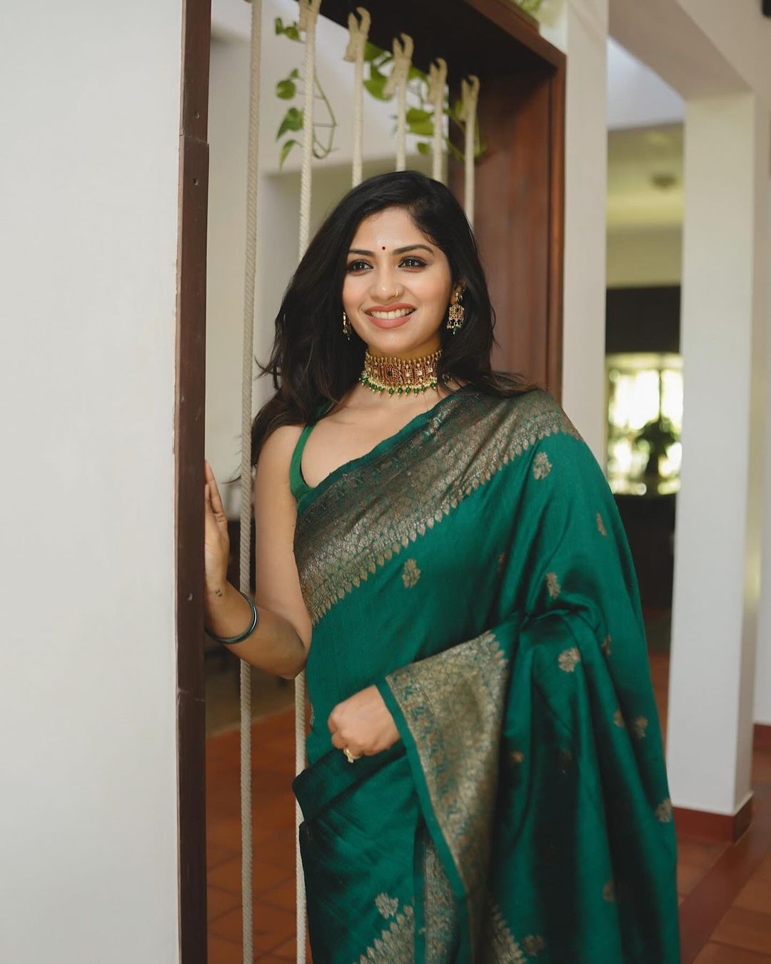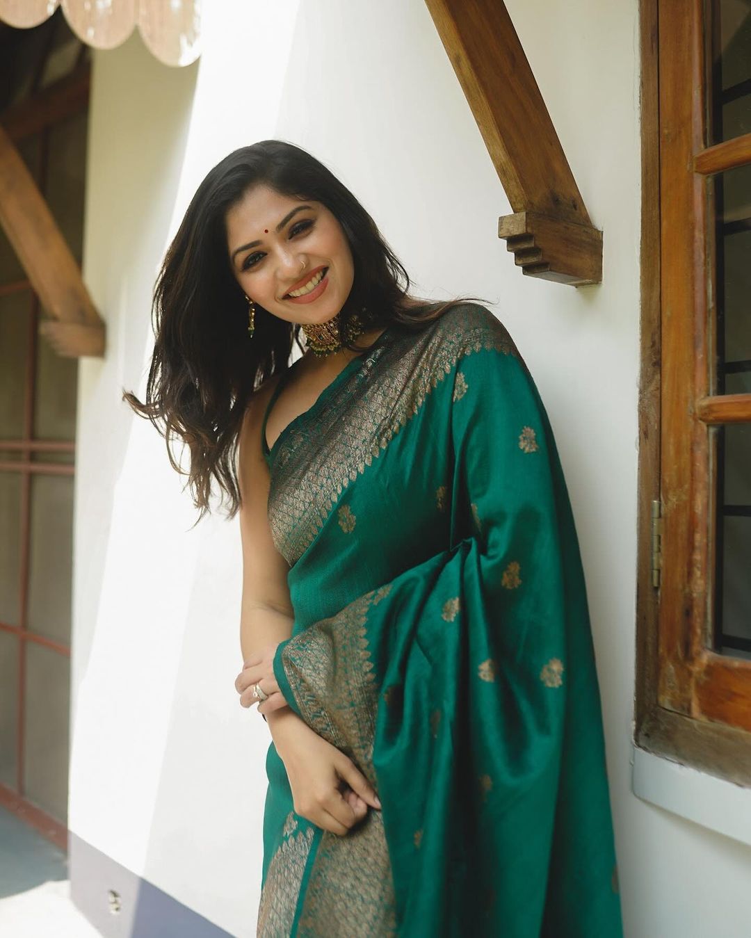 Drape yourself in elegance with this Green Kanjivaram soft silk saree, featuring a stunning matching border that enhances its traditional charm. Perfect for festive occasions and celebrations, this saree exudes sophistication and grace. Made from premium quality soft silk, it ensures comfort and style all day long. Please note, the blouse is unstitched, allowing you to tailor it to your preferences. making it versatile for various styling options.