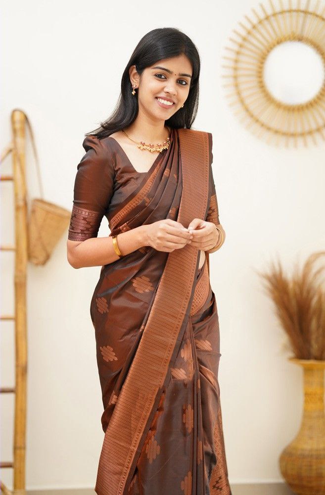 This luxurious Maroon soft silk Kanjivaram saree is a perfect blend of tradition and elegance. Adorned with an attractive matching border, it exudes a timeless charm ideal for festive celebrations and special occasions. The saree comes with an unstitched blouse piece, allowing you to customize your look. Crafted with premium soft silk, it drapes gracefully, making it a standout addition to your ethnic wardrobe.