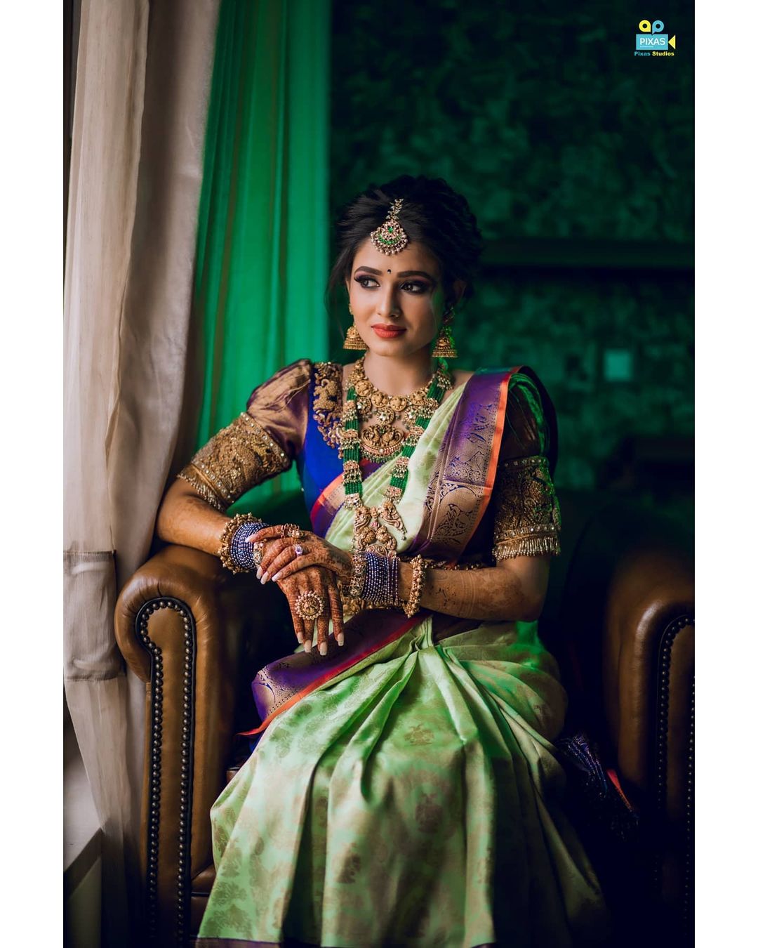 This exquisite pista color Kanjivaram silk saree is designed to impress with its rich pallu and matching border, making it the perfect choice for traditional celebrations and weddings. The saree features an elegant design, ensuring a timeless appeal. Crafted with fine silk, it offers a luxurious feel and a flawless finish. The blouse is unstitched, allowing you to customize it to your preference. Add this beautiful saree to your collection for a truly regal look.