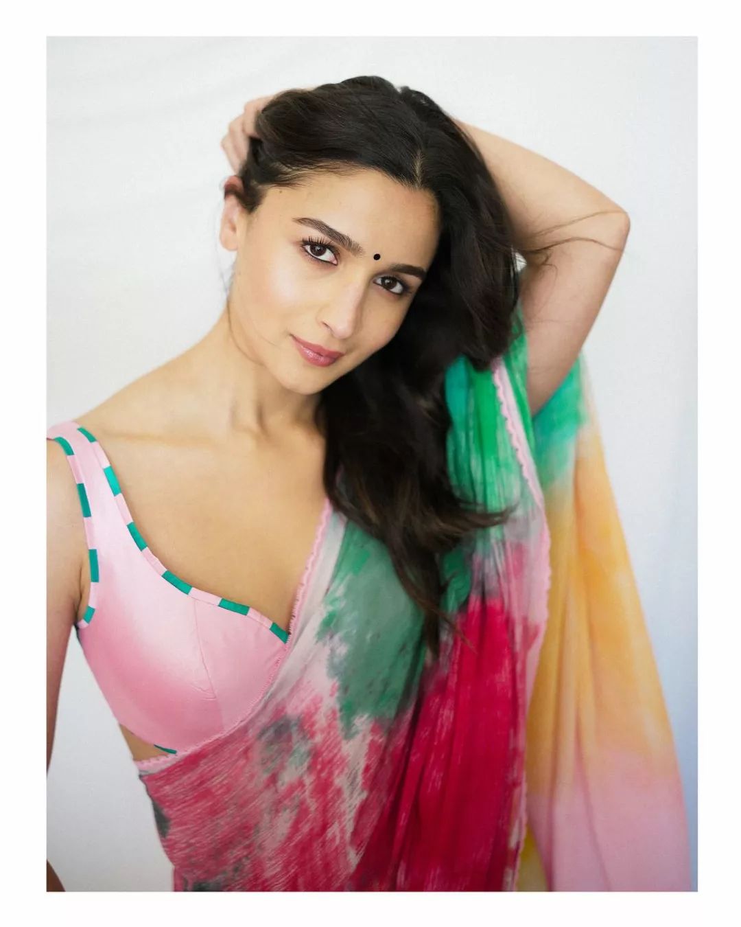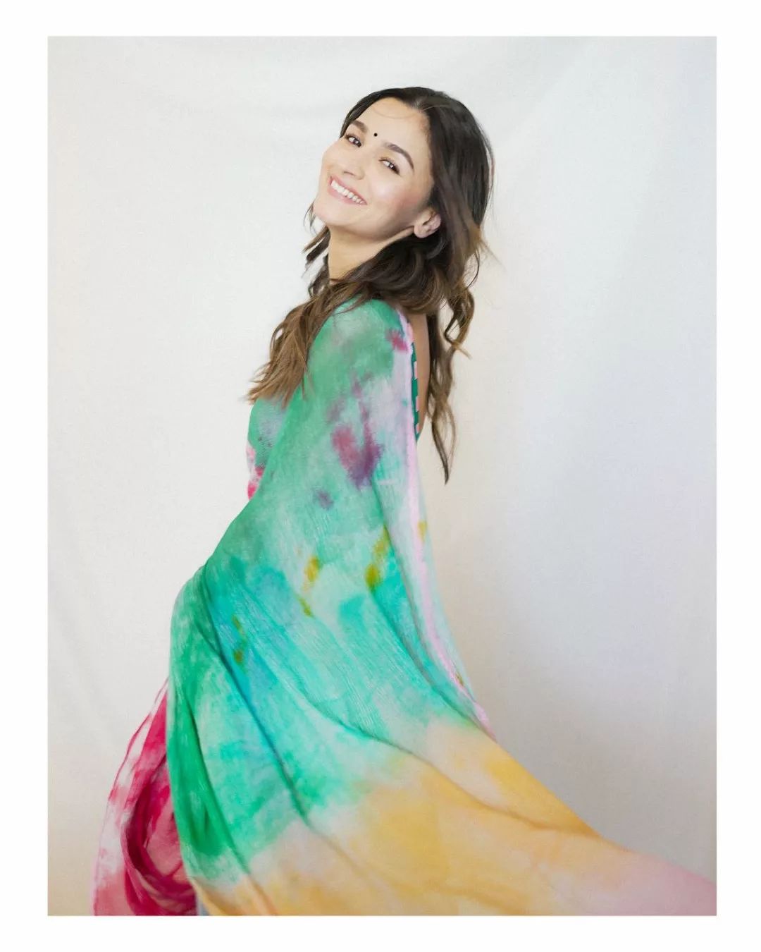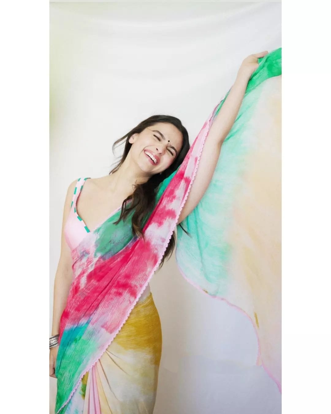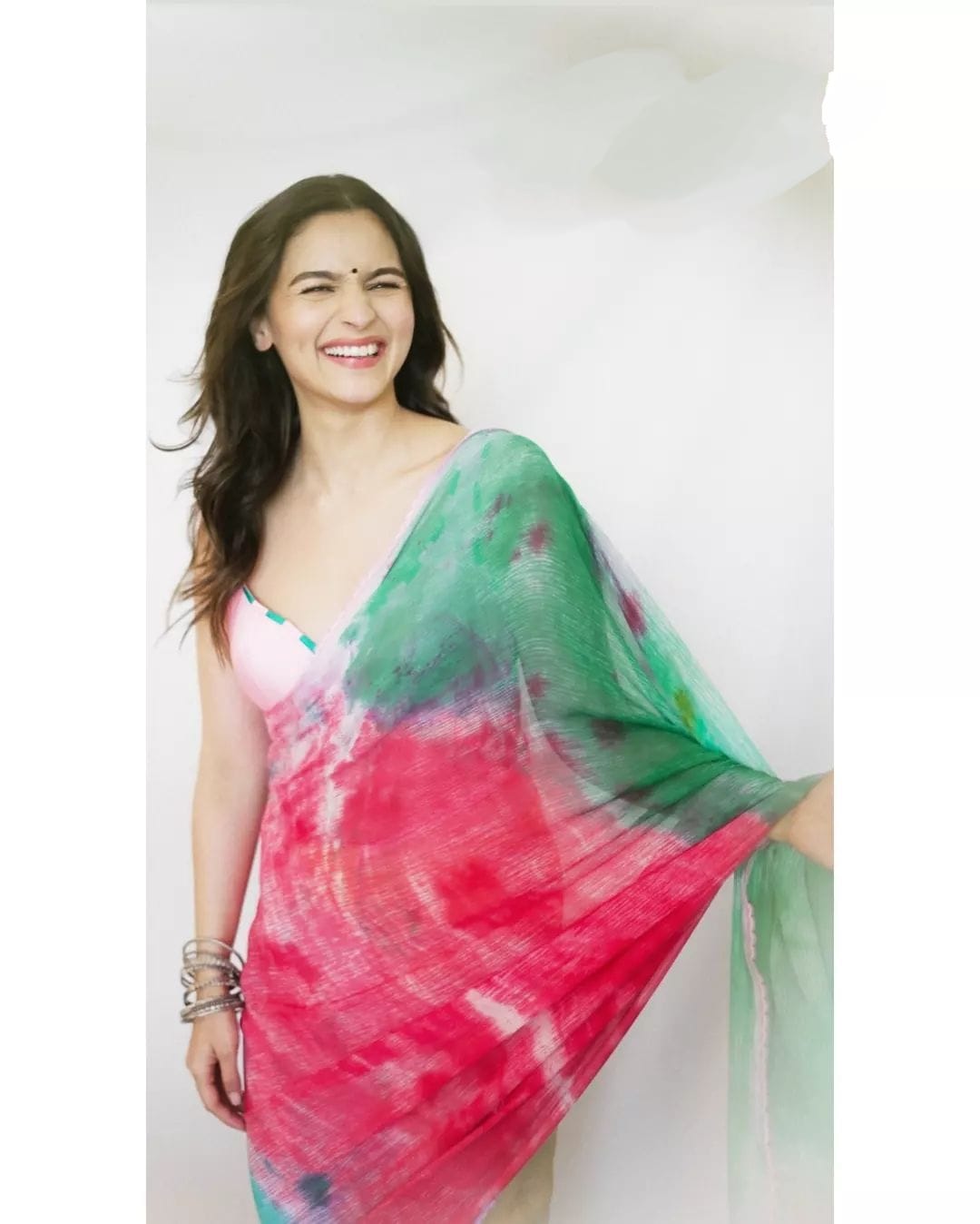 Vibrant Multi-Color Georgette Saree with Pre-Stitched Draping for Effortless Style
